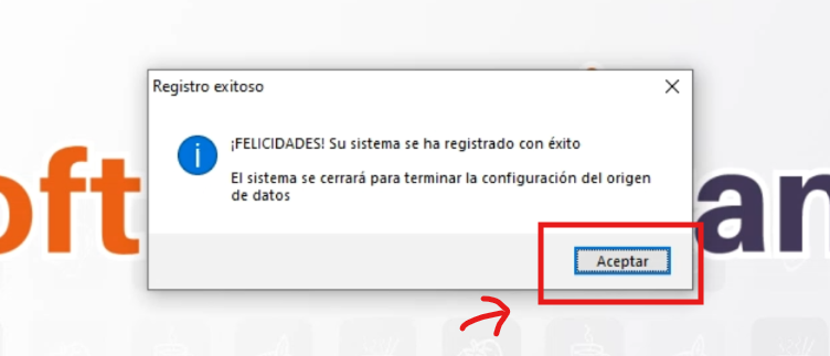 6. !!Felicidades!! Su sistema ha sido registrado Satisfactoriamente.