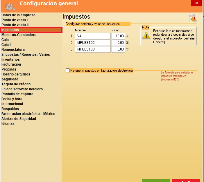 Seleccionar la opción "Impuestos":