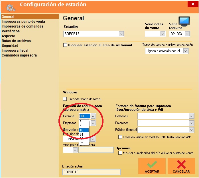 - Seleccionar el Formato de Factura "10" y dar clic en Aceptar.