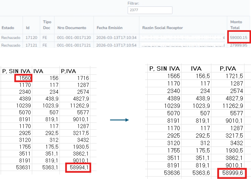 La autosuma de P. con IVA debe ser igual o lo más cercano al monto total de la factura.