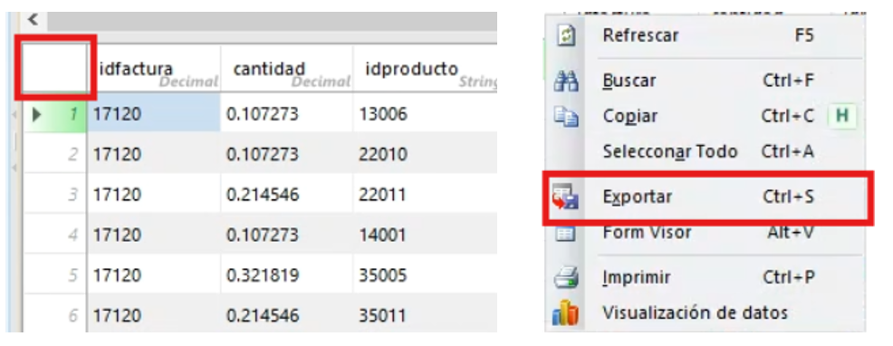 a la base de datos y Exportación de datos.