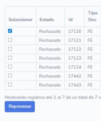 correspondiente a la factura y pulsamos reprocesar.