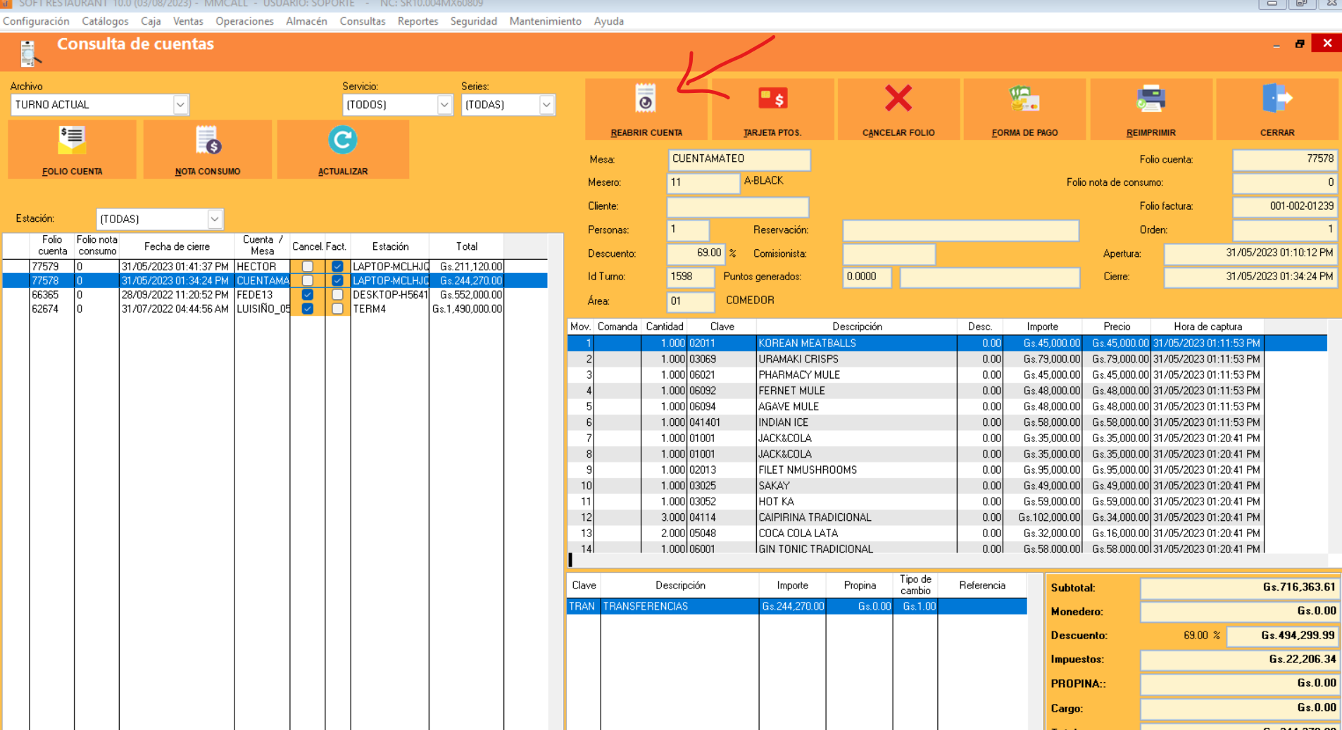 1. Seleccionamos la opción Consultas / Consulta de Cuentas, que se encuentra en la Barra de Menu del Sistema.2. Seleccionamos las cuenta deseada, luego Clic en en el Boton Reabrir Cuenta.3. El sistema le solicitará una contraseña de autorizacion para tal efecto.4. Una vez ingresada la contraseña, su cuenta ya estará reabierta nuevamente.
