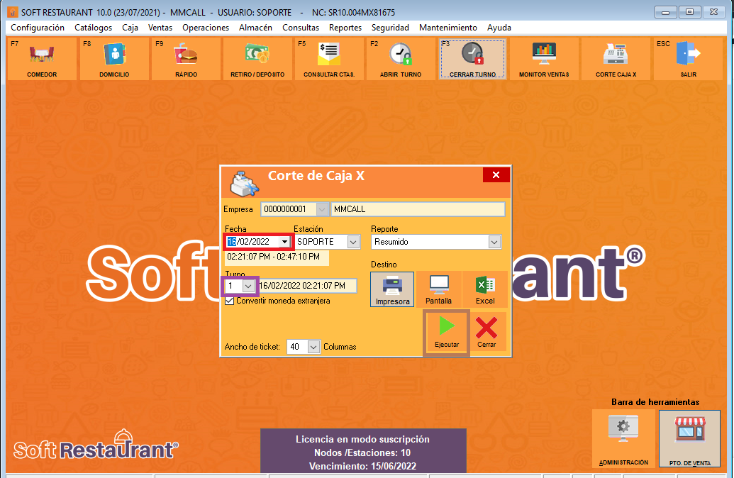 2. Ingresar la fecha o el turno para el reporte solicitado.